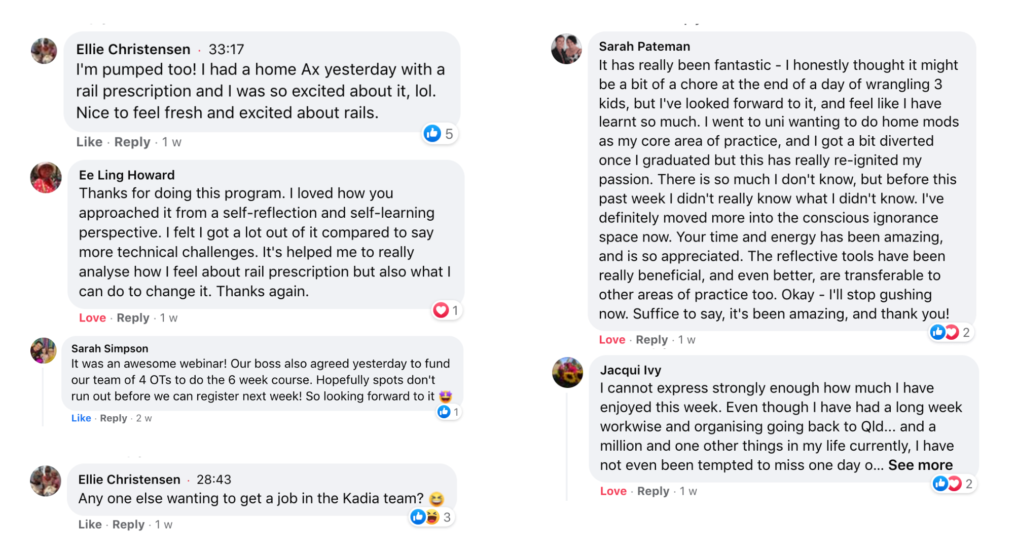 “Learning about legislation, different rail configurations, rail products and how to bring it all together was so helpful. Definitely the best PD I have completed this year… if not ever…” (Senior OT)