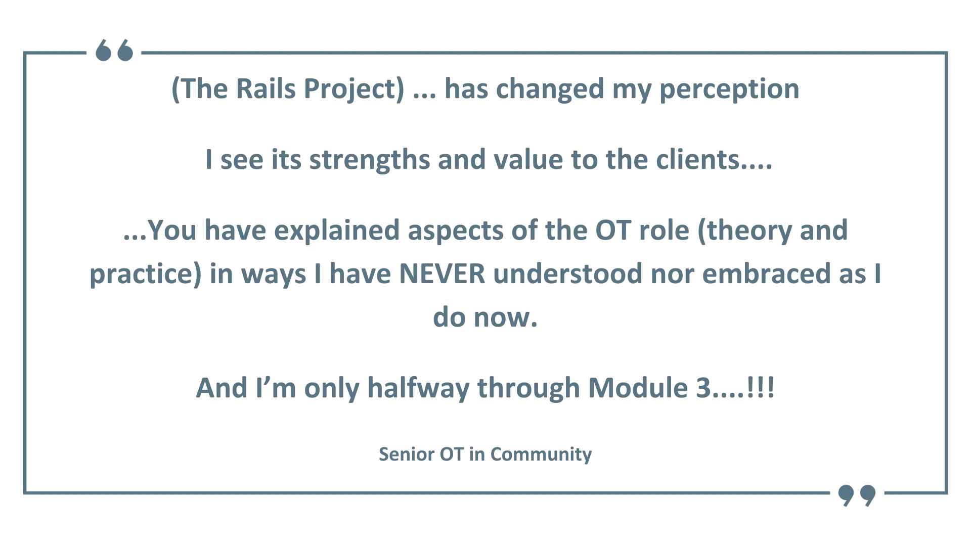 A Self-Paced Roadmap to Prescribing Powerful, Effective and Evidence Based Rails for Occupational Therapists